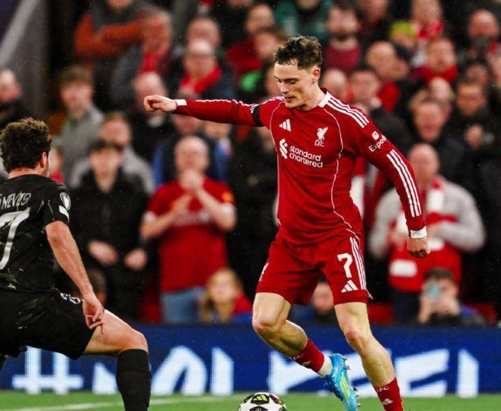 次回合来到安菲尔德,利物浦已经没有退路。 斯洛特排出了更具攻击性的阵容,试图用主场气势压制巴黎。 开场阶段红军确实创造了几次机会,凯尔凯兹的射门被萨福诺夫神奇扑出,范戴克随后的补射也被破坏。 但顶住这波攻势后,巴黎逐渐掌控了比赛节奏。